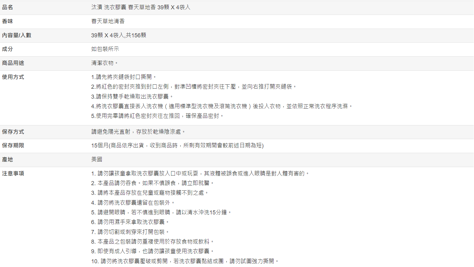 【好市多代購】汰漬 洗衣膠囊 春天草地香 39顆 X 4袋入