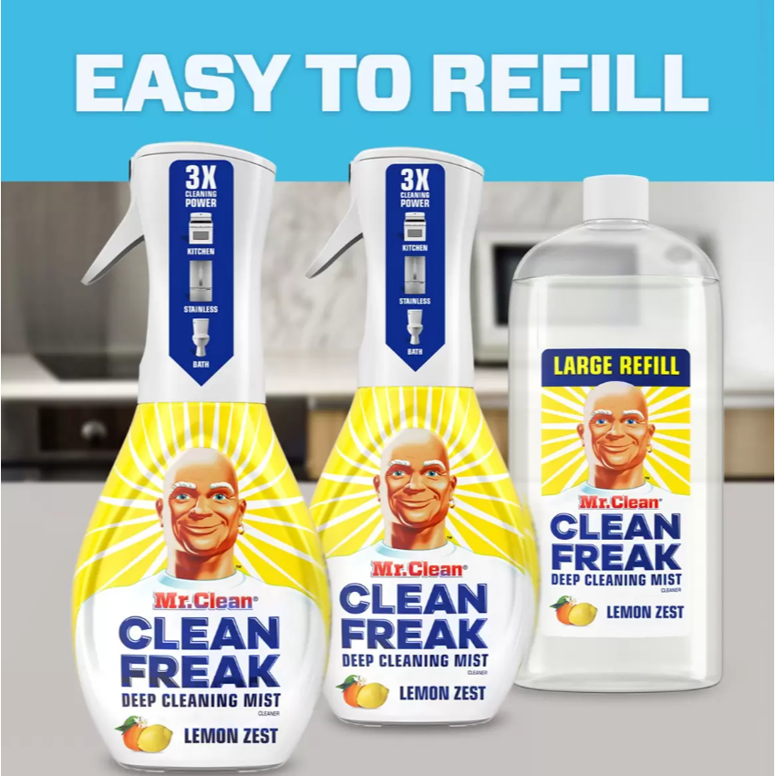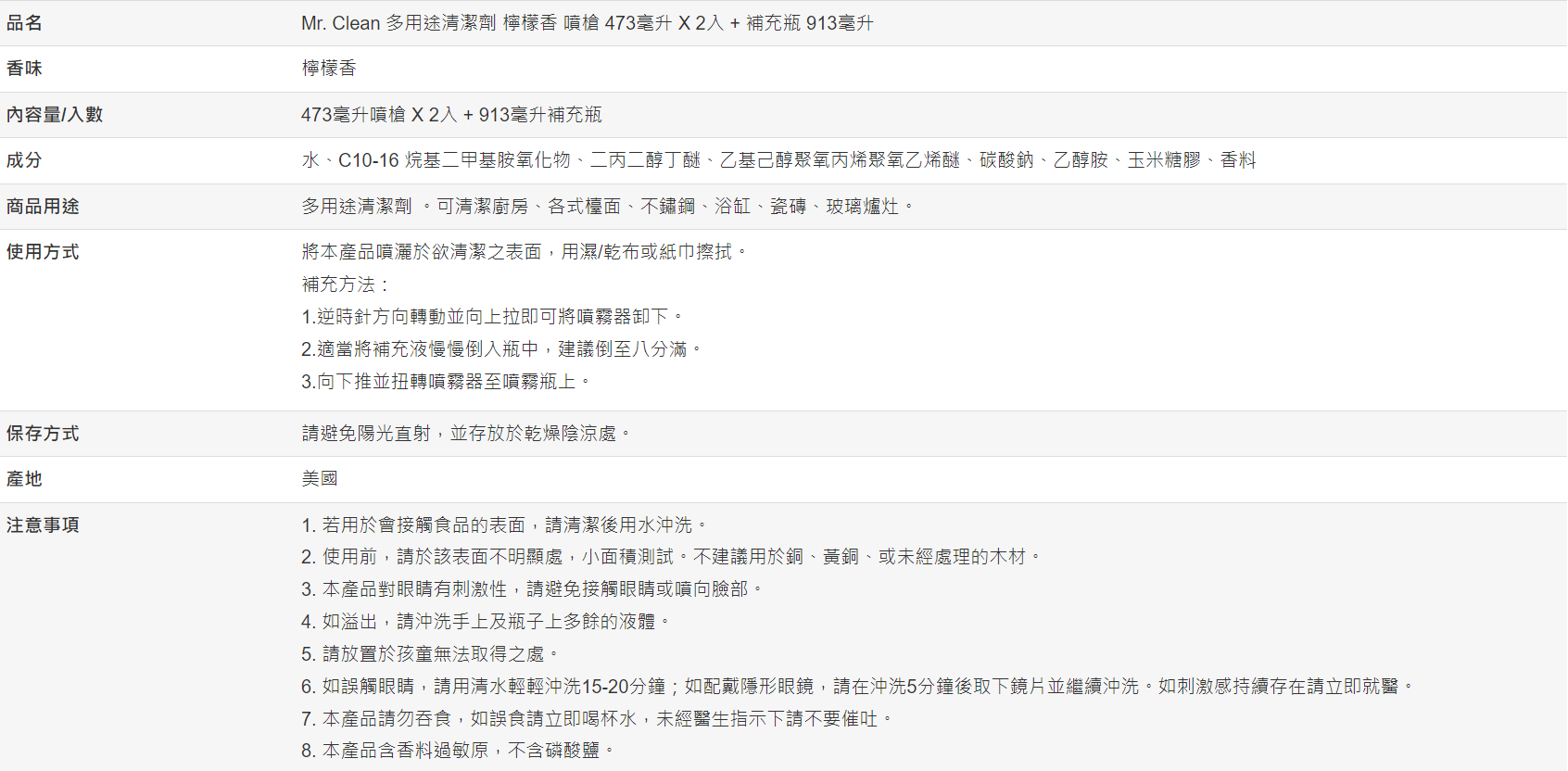 【好市多代購】Mr. Clean 多用途清潔劑 檸檬香 噴槍 473毫升 X 2入 + 補充瓶 913毫升