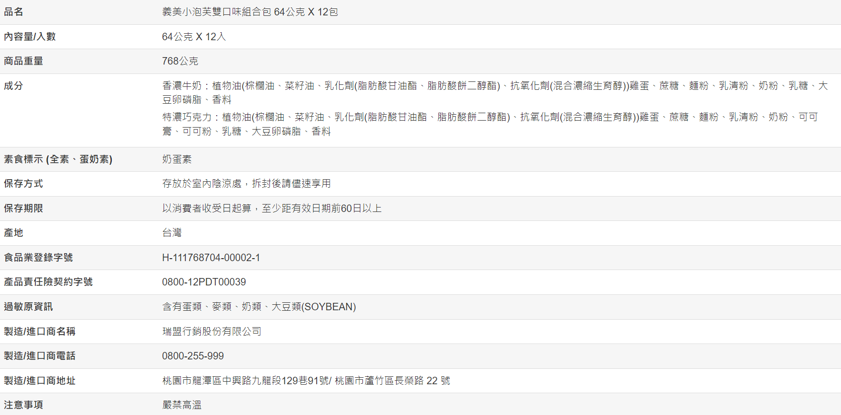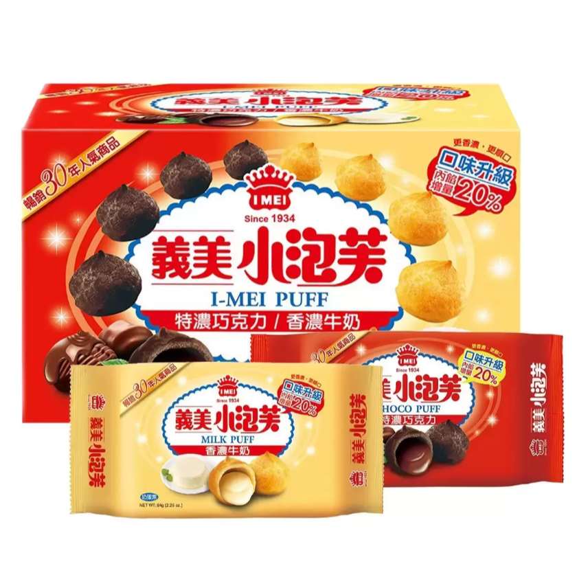 【好市多代購】義美 小泡芙雙口味組合包 64公克 X 12入