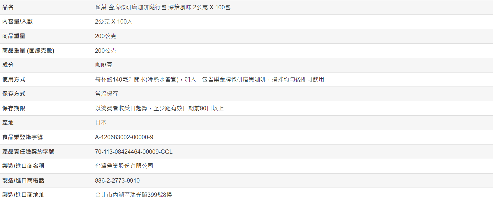 【好市多代購】雀巢 金牌微研磨咖啡隨行包 深焙風味 2公克 X 100包