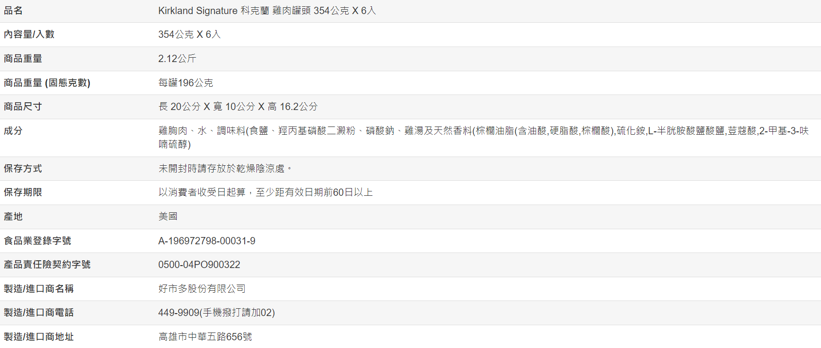 【好市多代購】Kirkland Signature 科克蘭 雞肉罐頭 354公克 X 6入