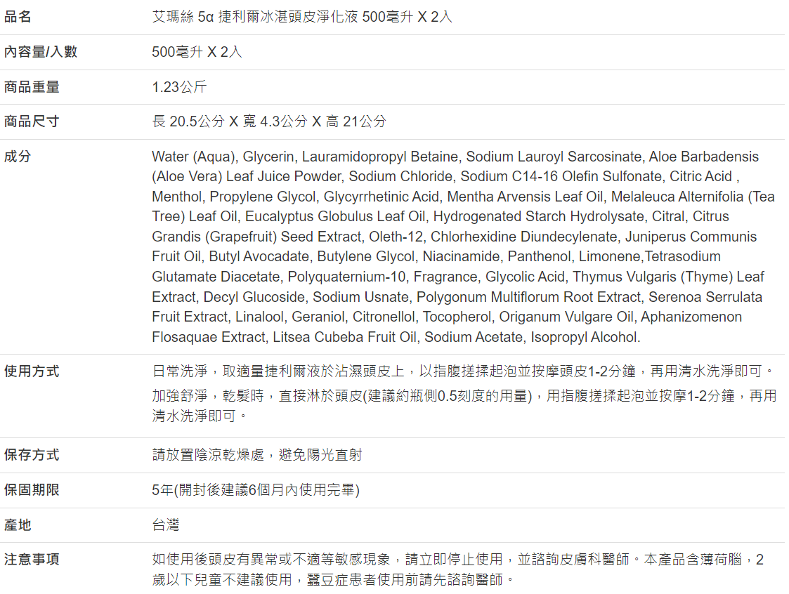【好市多代購】艾瑪絲 5α 捷利爾冰湛頭皮淨化液 500毫升 X 2入