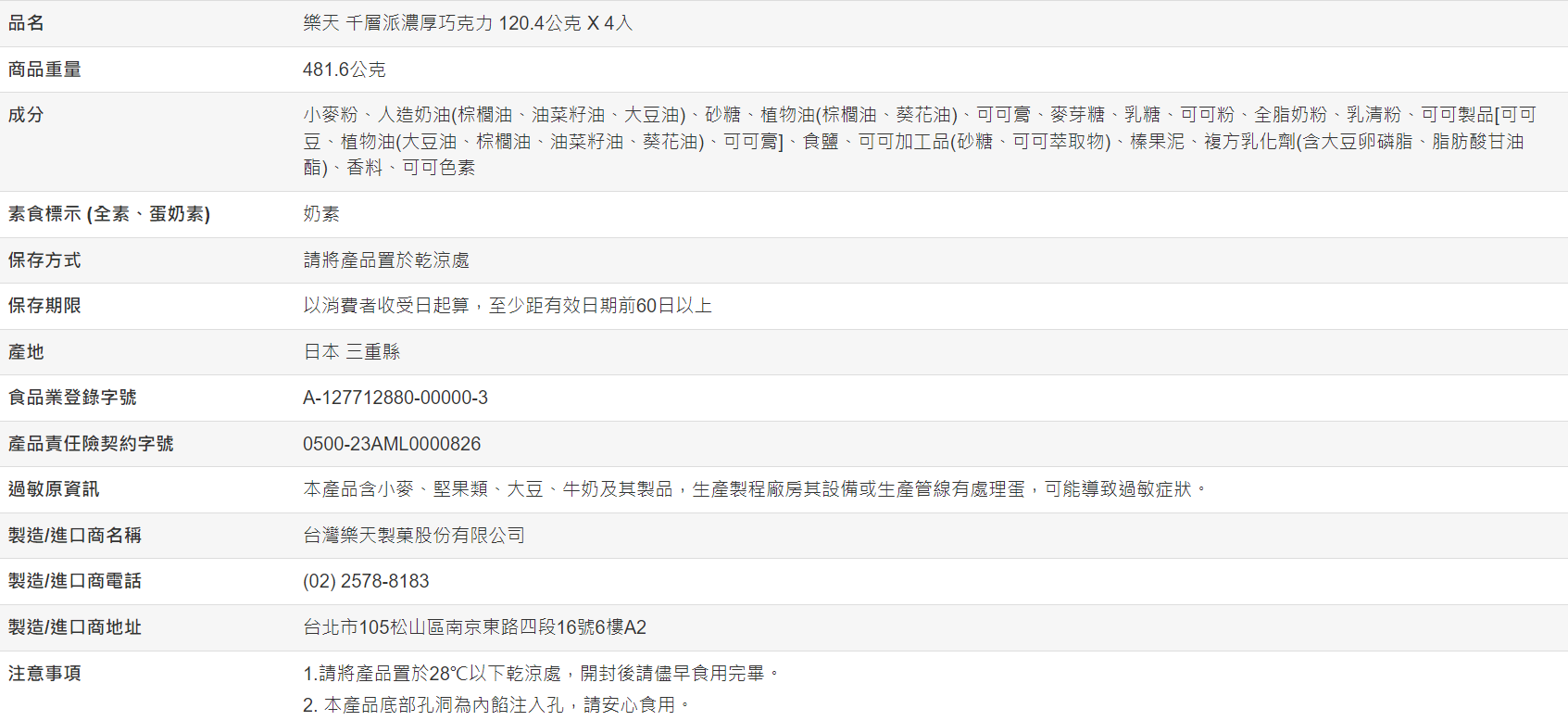 【好市多代購#限時特價】樂天 千層派濃厚巧克力 120.4公克 X 4入~12/28