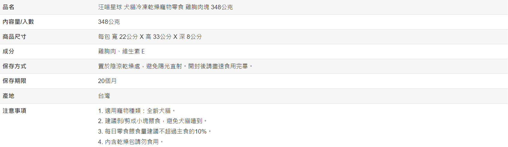 【好市多代購#限時特價】汪喵星球 犬貓冷凍乾燥寵物零食 雞胸肉塊 348公克~03/15