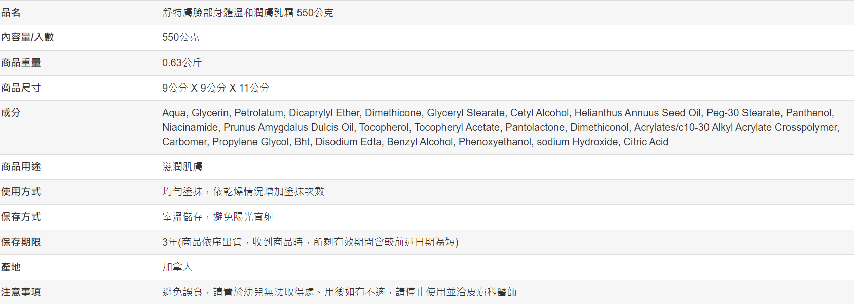 【好市多代購#限時特價】舒特膚長效潤膚霜 550公克~01/18