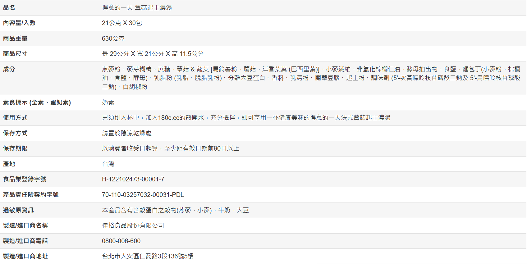 【好市多代購#限時特價】得意的一天 法式蕈菇起士濃湯 21公克 X 30入~03/15