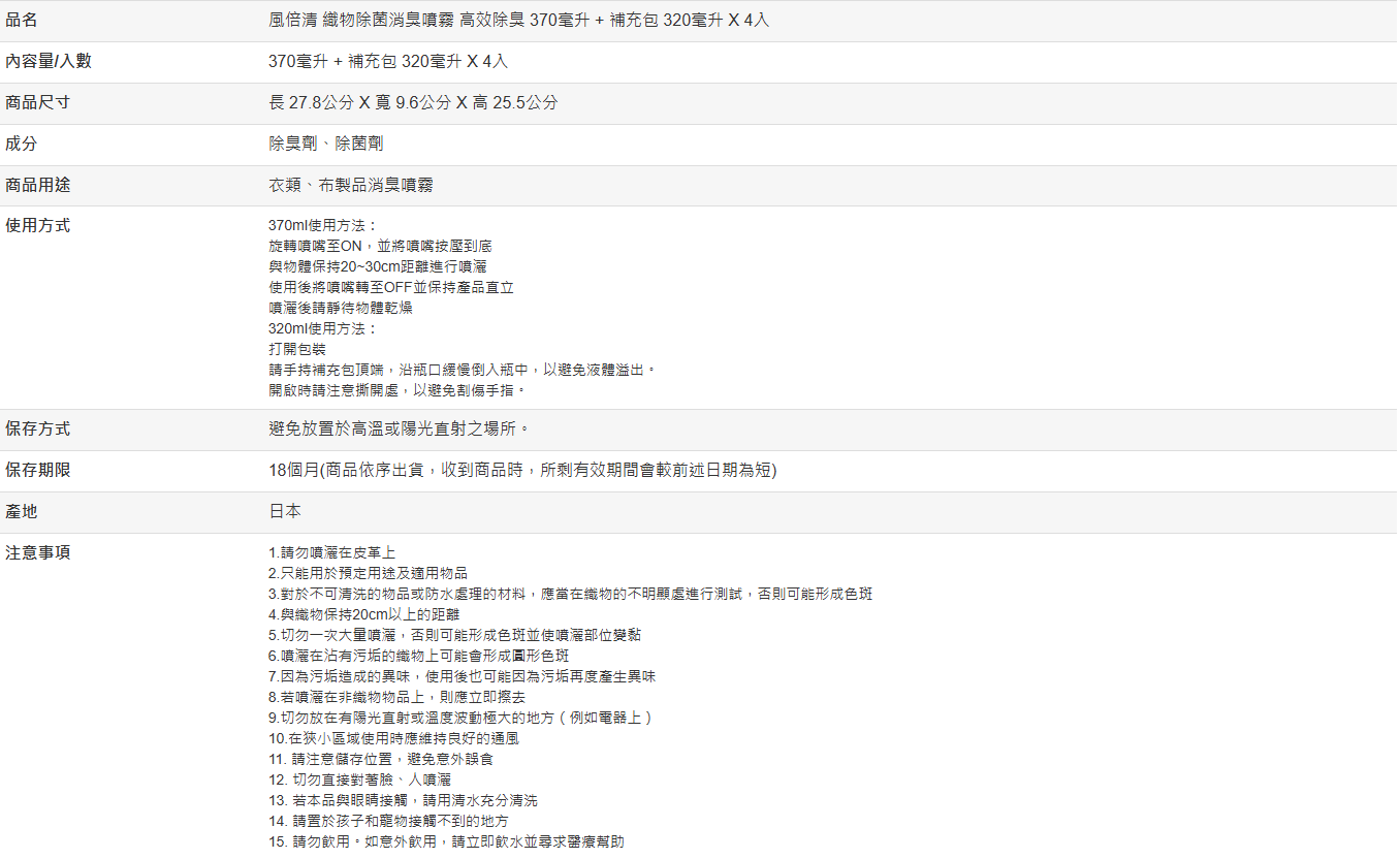 【好市多代購】風倍清 織物除菌消臭噴霧 高效除臭 370毫升 + 補充包 320毫升 X 4入