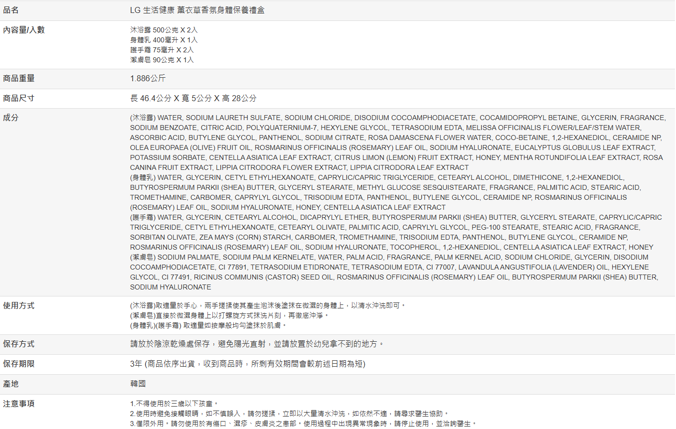 【好市多代購】LG 生活健康 薰衣草香氛身體保養禮盒