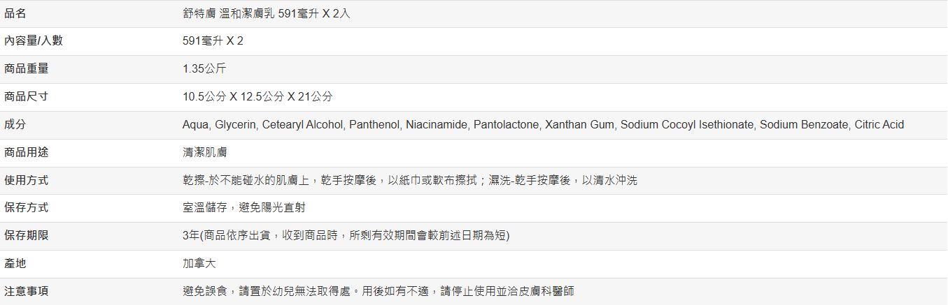 【好市多代購#限時特價】舒特膚 溫和潔膚乳 591毫升 X 2入~03/15