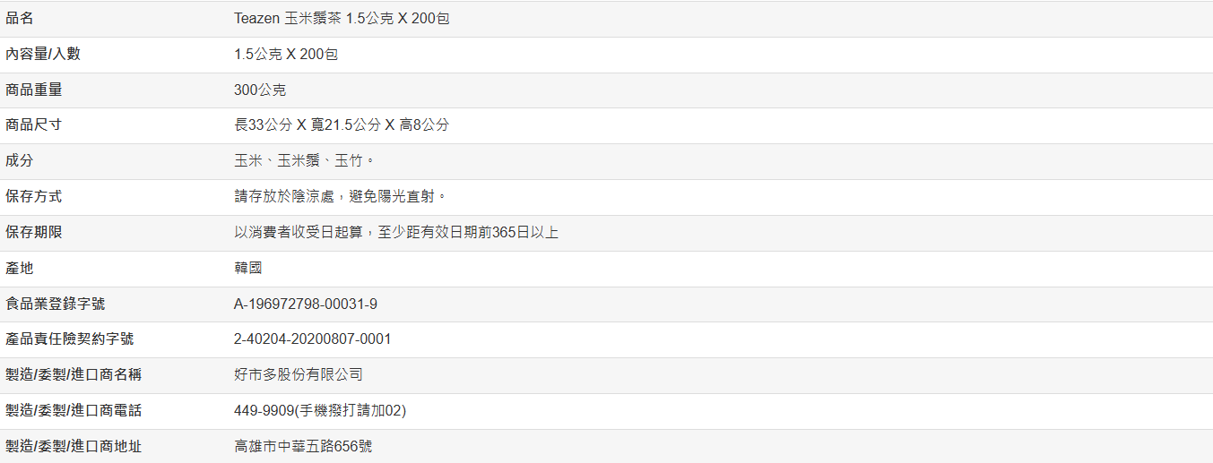 【好市多代購】Teazen 玉米鬚茶 1.5公克 X 200包