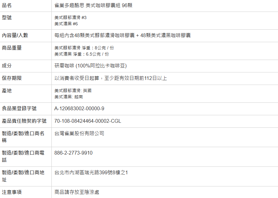 • 咖啡膠囊48顆