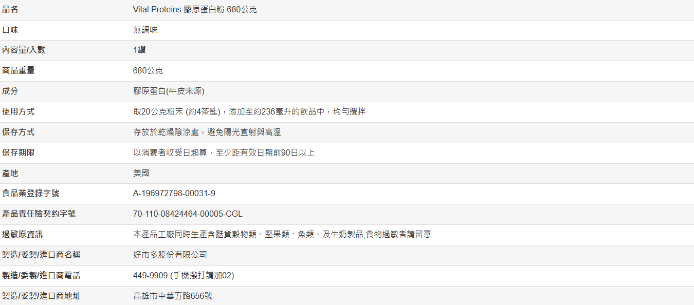 • 每1公克粉末含1公克膠原蛋白