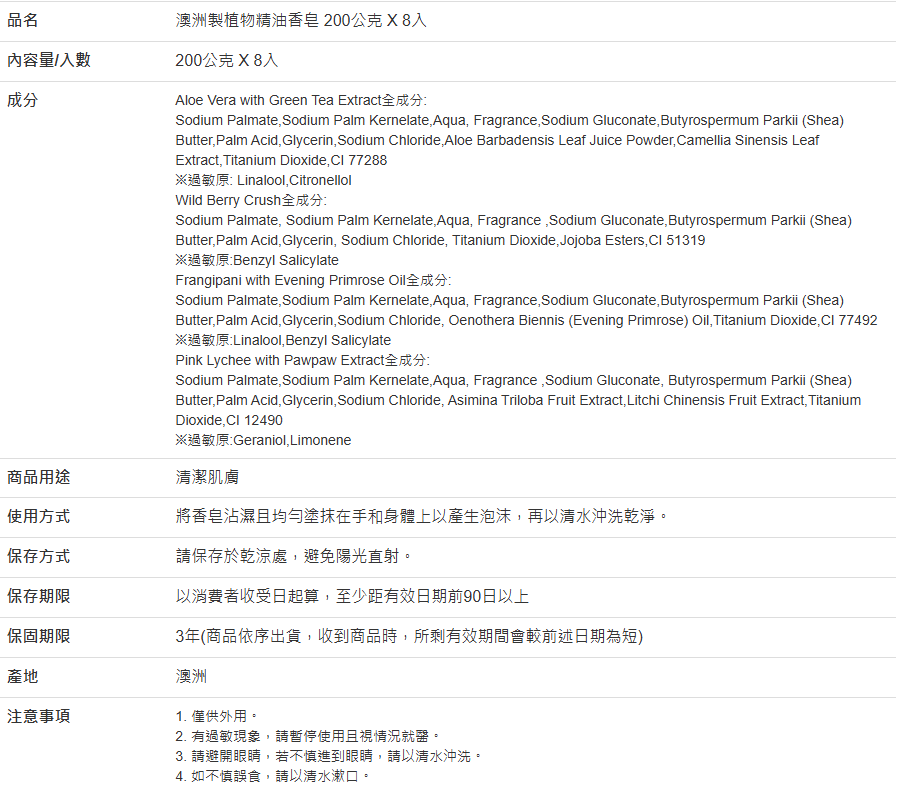 【好市多代購】澳洲製植物精油香皂 200公克 X 8入