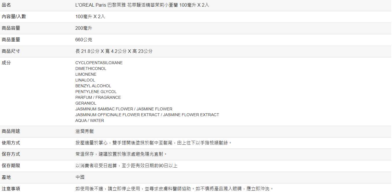 【好市多代購】L'OREAL Paris 巴黎萊雅 花萃馥活精華茉莉小蒼蘭 100毫升 X 2入