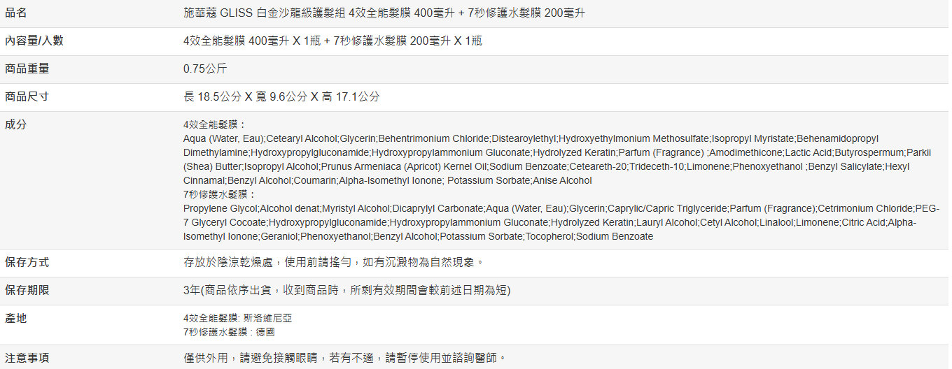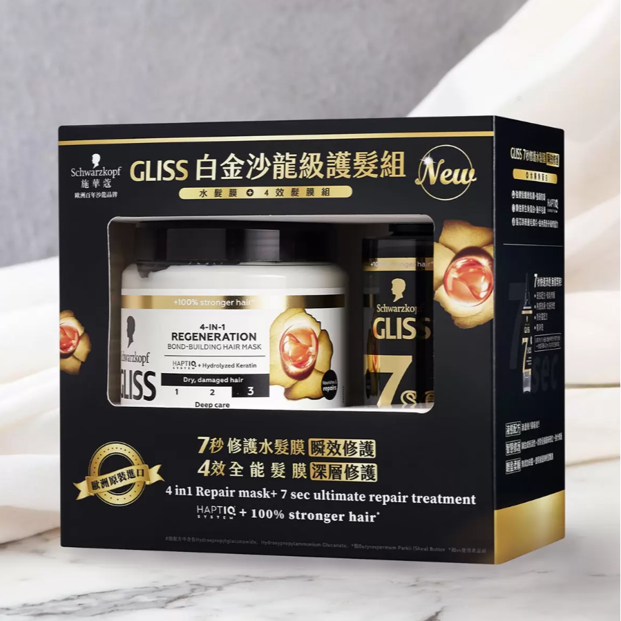 【好市多代購】施華蔻 GLISS 白金沙龍級護髮組 4效全能髮膜 400毫升 + 7秒修護水髮膜 200毫升