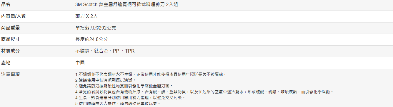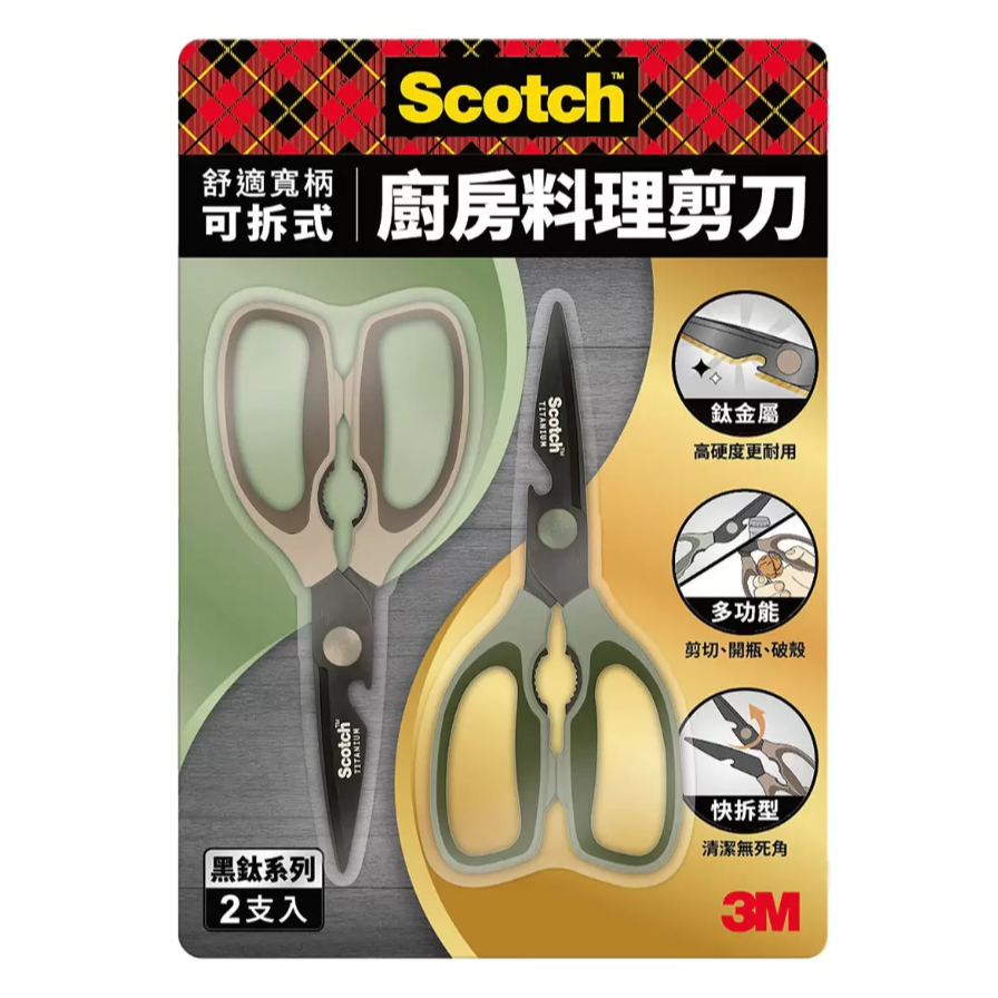 【好市多代購】3M Scotch 鈦金屬舒適寬柄可拆式料理剪刀 2入組