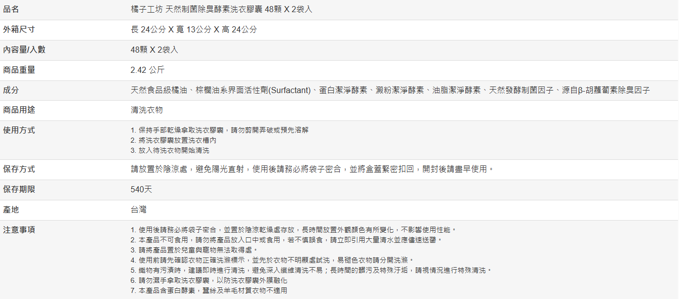 【好市多代購】橘子工坊 天然制菌除臭酵素洗衣膠囊 48顆 X 2袋入