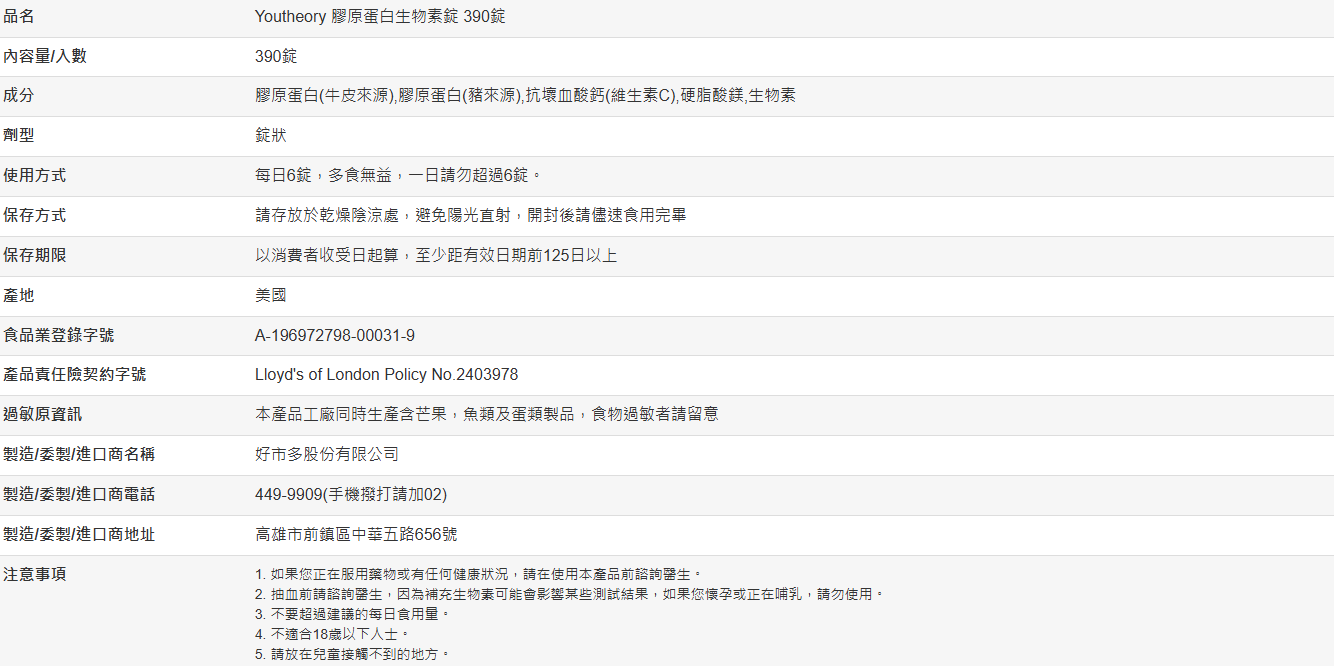 【好市多代購#限時特價】Youtheory 膠原蛋白生物素錠 390錠~12/14