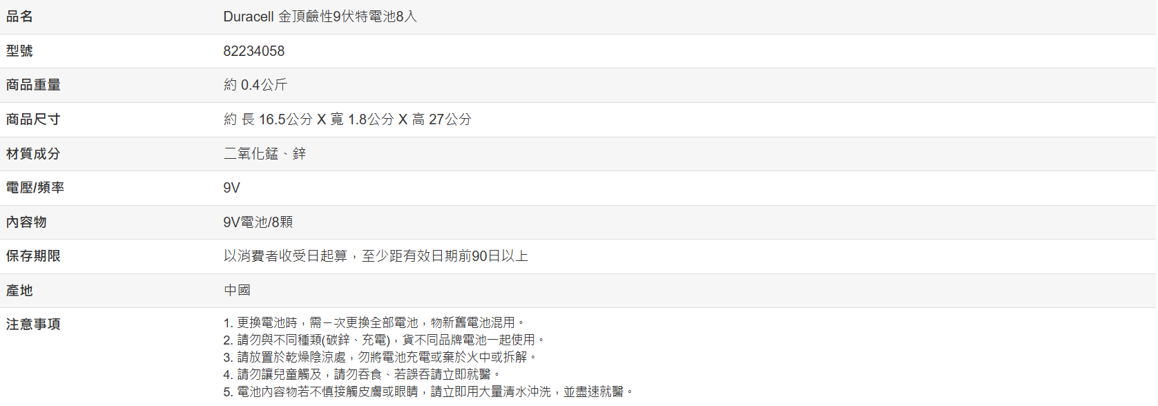 【好市多代購】金頂 鹼性電池9伏特 8入