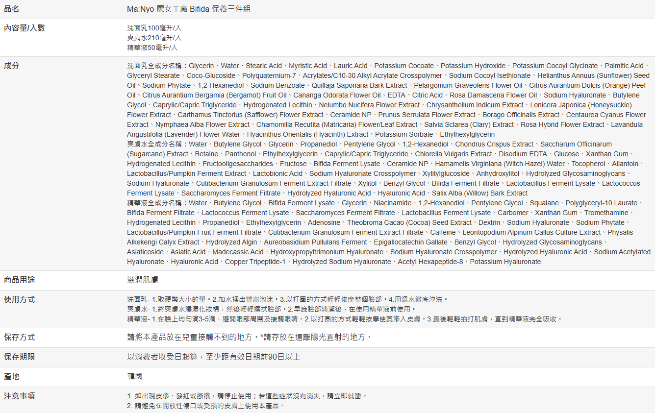 【好市多代購】Ma:Nyo 魔女工廠 Bifida 保養三件組