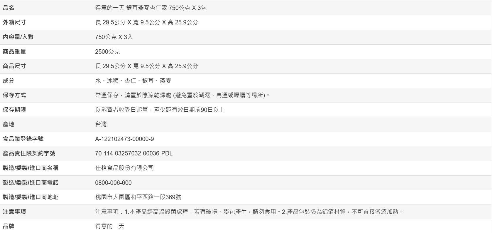【好市多代購#限時特價】得意的一天 銀耳燕麥杏仁露 750公克 X 3包~12/14
