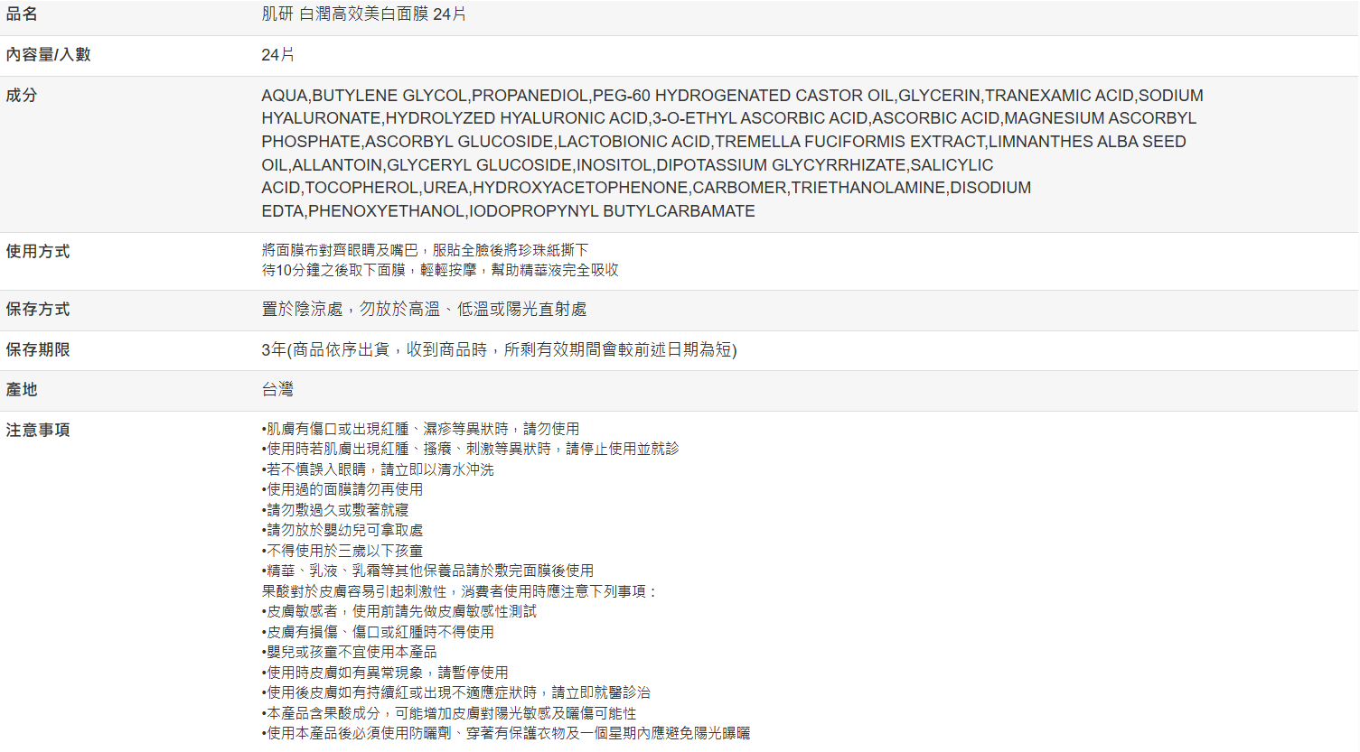 【好市多代購#限時特價】肌研 白潤高效美白面膜 24片~01/11