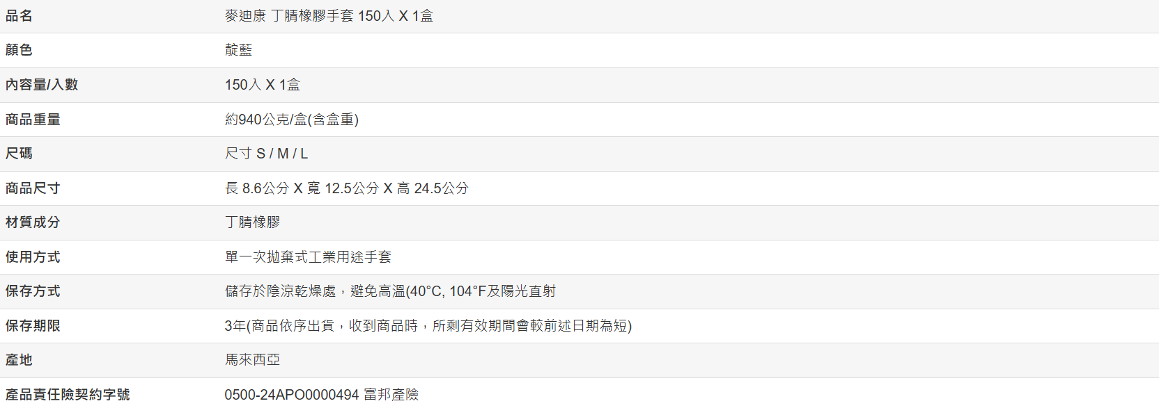 【好市多代購】麥迪康 丁腈橡膠手套 150入 X 1盒