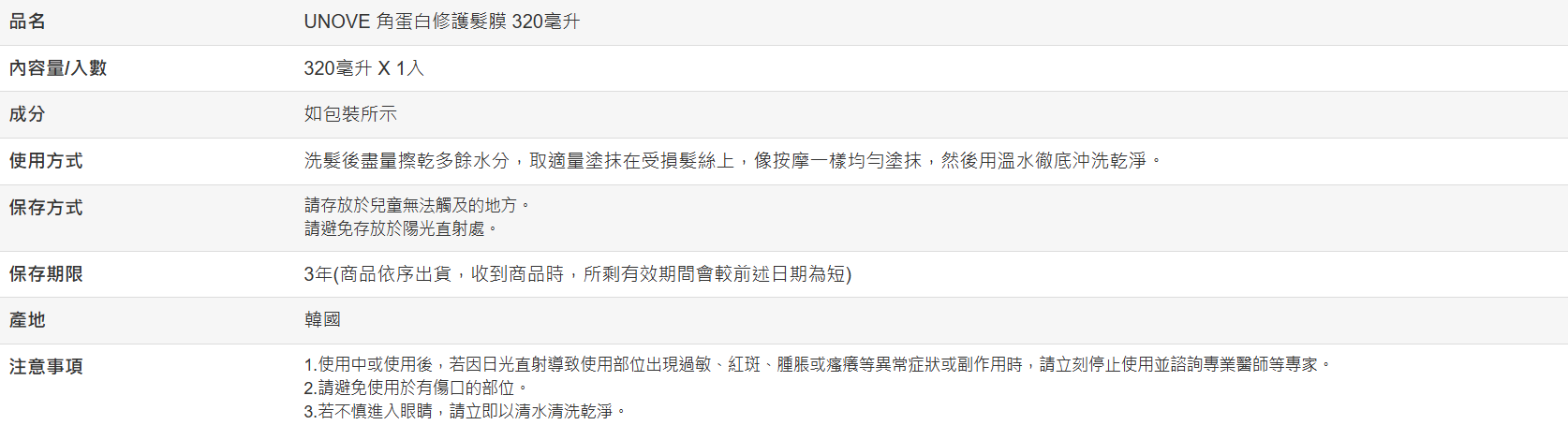 【好市多代購】UNOVE 角蛋白修護髮膜 320毫升