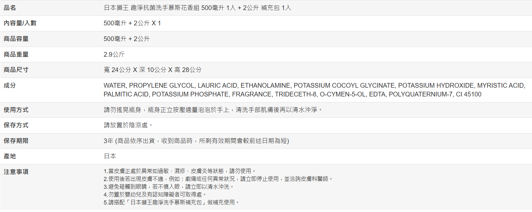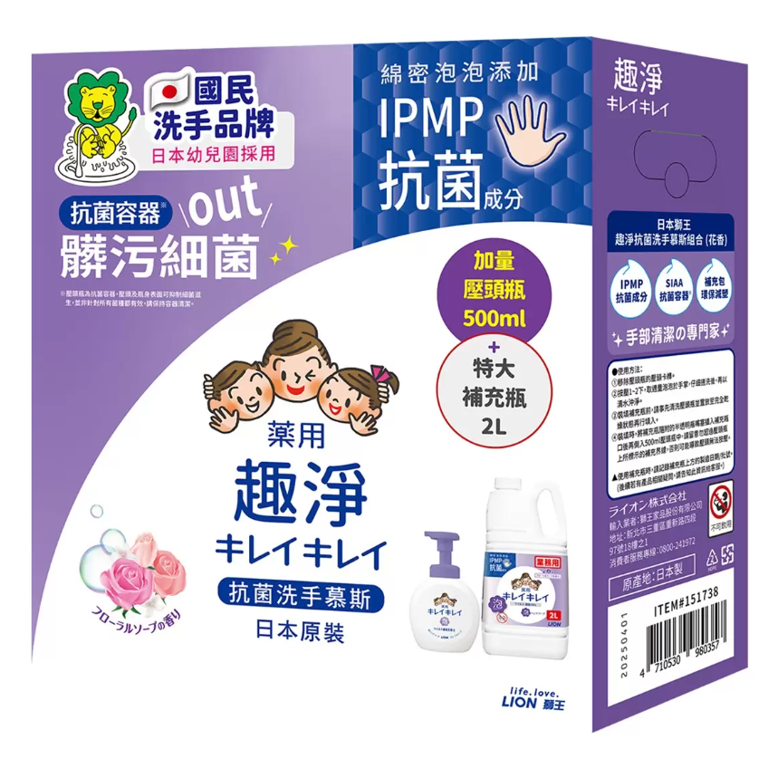 【好市多代購】日本獅王 趣淨抗菌洗手慕斯花香組 500毫升 1入 + 2公升補充瓶 1入