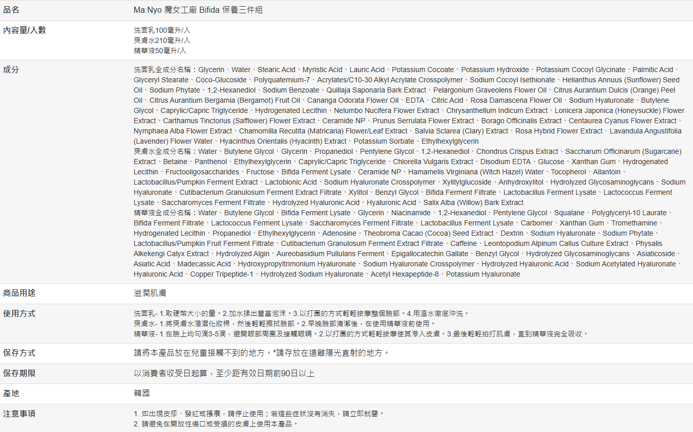 【好市多代購】Ma:Nyo 魔女工廠 Bifida 保養三件組