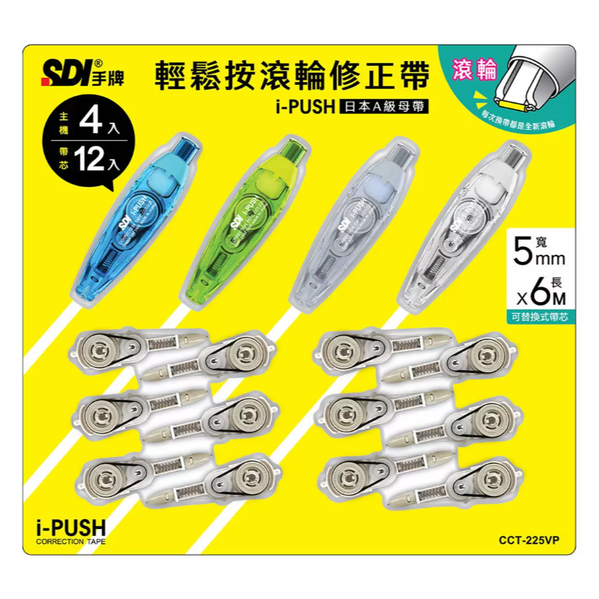 【好市多代購】手牌 i-PUSH 輕鬆按滾輪修正帶組 5公厘 X 6公尺 (修正帶 4入 + 替換帶 12入)