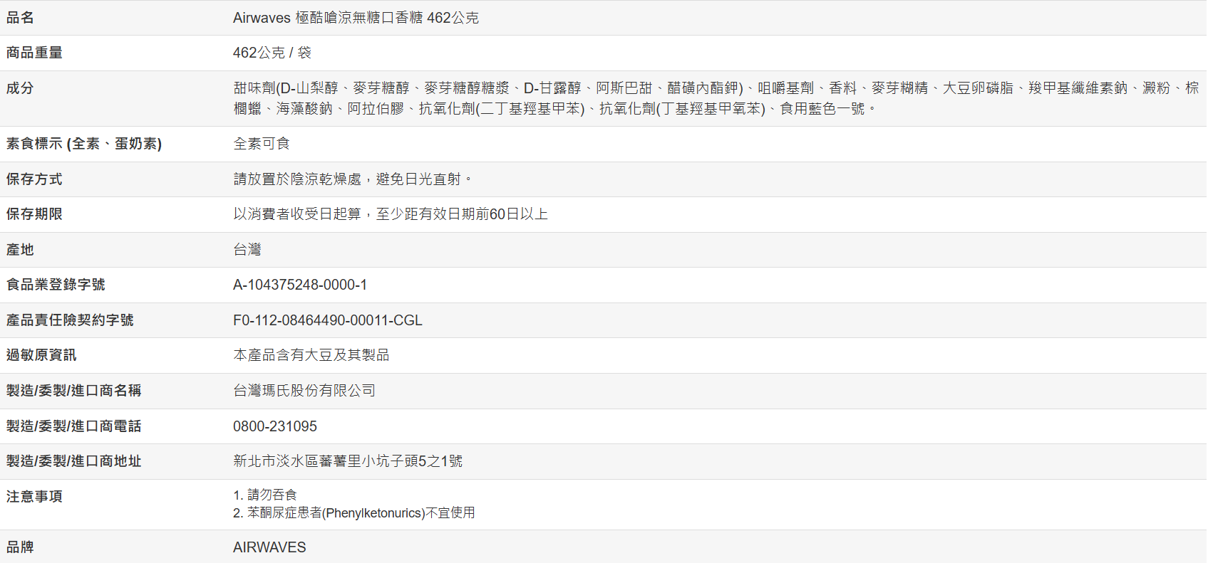 【好市多代購】Airwaves 極酷嗆涼無糖口香糖 462公克