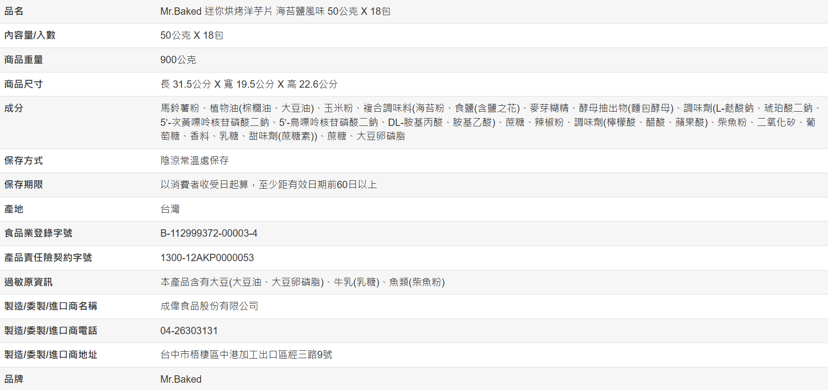 【好市多代購】Mr.Baked 迷你烘烤洋芋片 海苔鹽風味 50公克 X 18包
