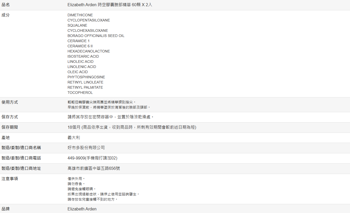 【好市多代購】Elizabeth Arden 時空膠囊臉部精華 60顆 X 2入