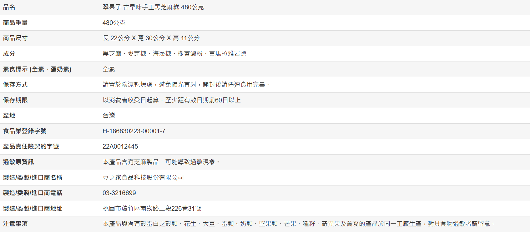 【好市多代購】翠果子 古早味手工黑芝麻糕 480公克