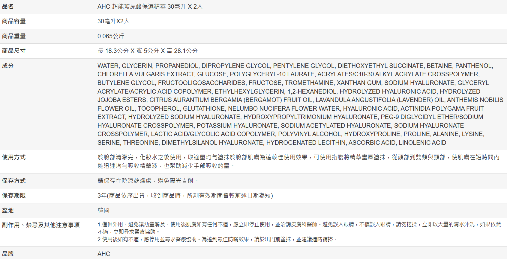 【好市多代購】AHC 超能玻尿酸保濕精華 30毫升 X 2入