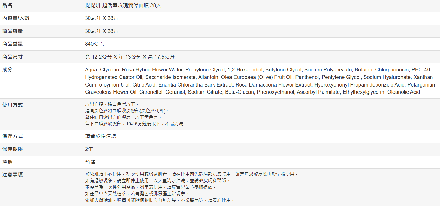 【好市多代購】提提研 超活萃玫瑰潤澤面膜 28入