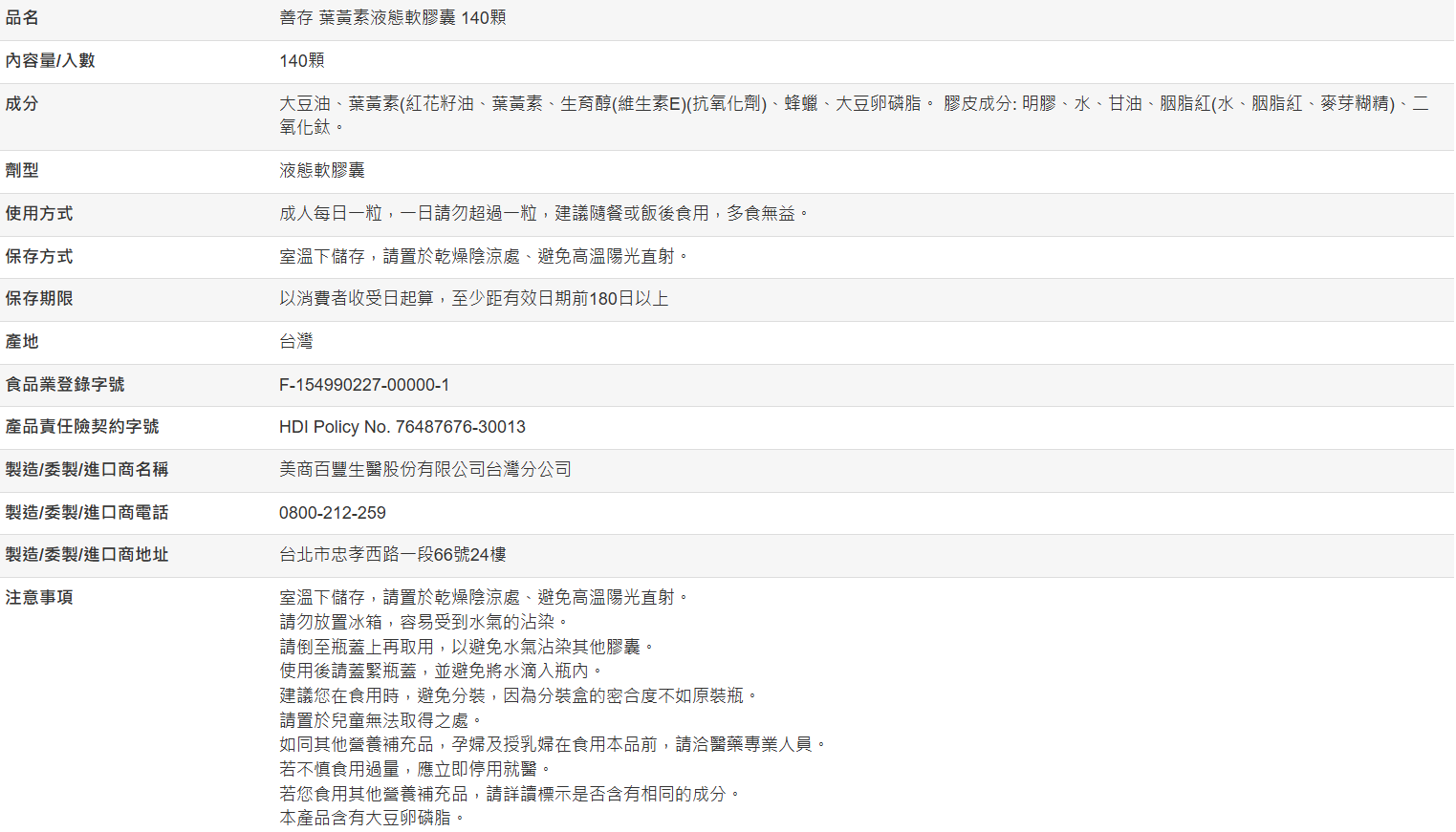 【好市多代購】善存 葉黃素液態軟膠囊 140顆