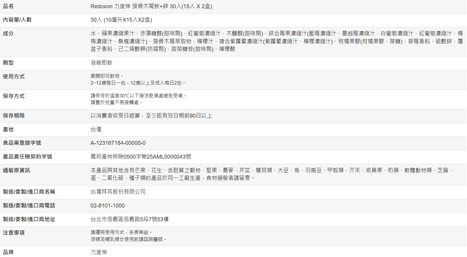 【好市多代購】Redoxon 力度伸 接骨木莓飲+鋅 30入(15入 X 2盒)