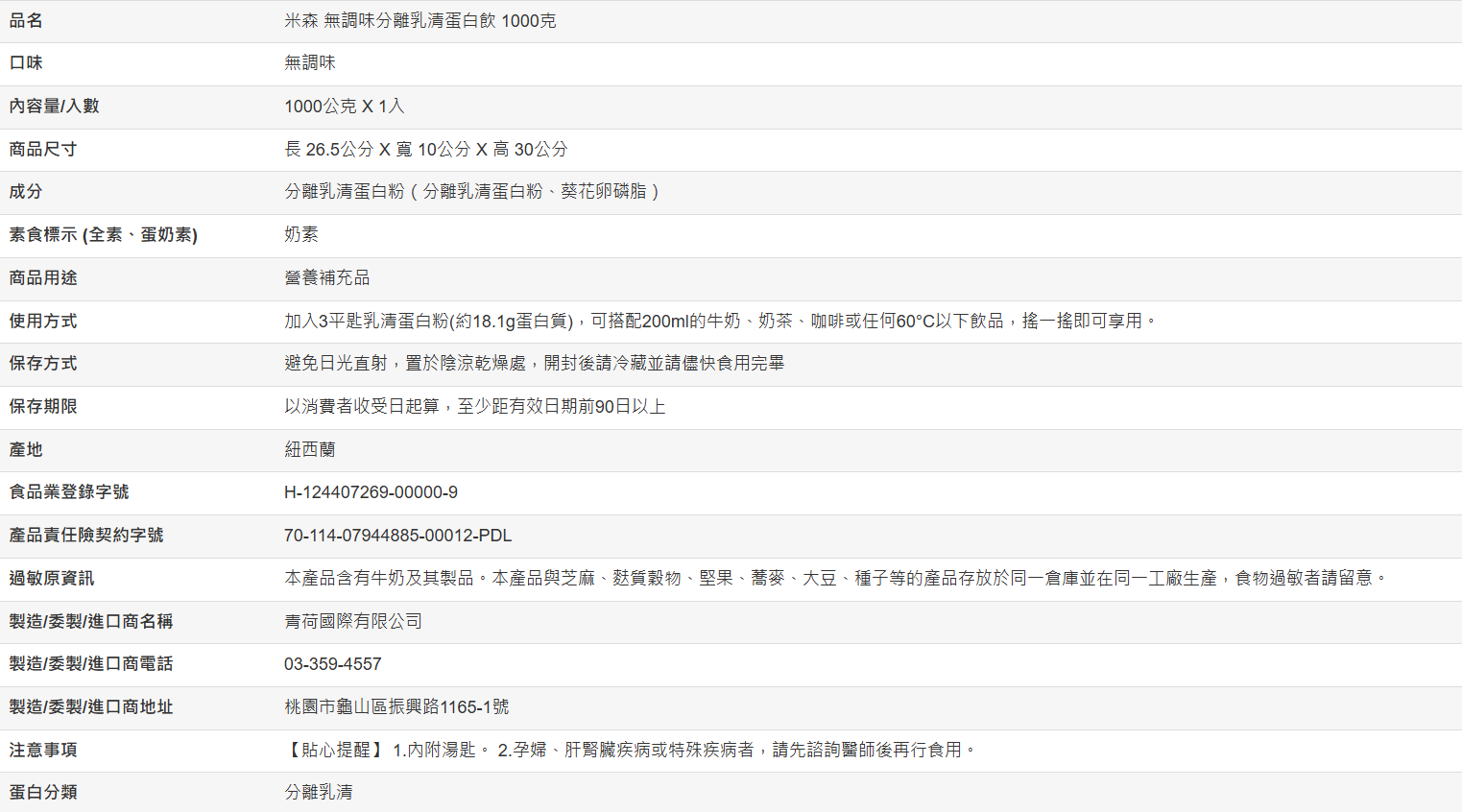【好市多代購】米森 無調味分離乳清蛋白飲 1000克