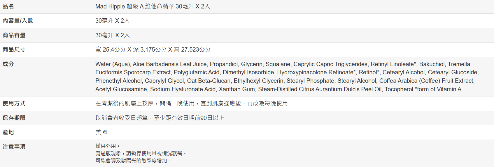 【好市多代購】Mad Hippie 超級 A 維他命精華 30毫升 X 2入