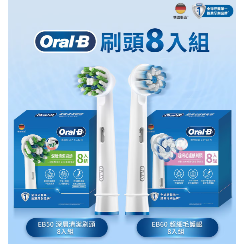 • EB50 深層清潔多動向刷頭 X 8入,完整包覆每顆牙齒,適合深層清潔