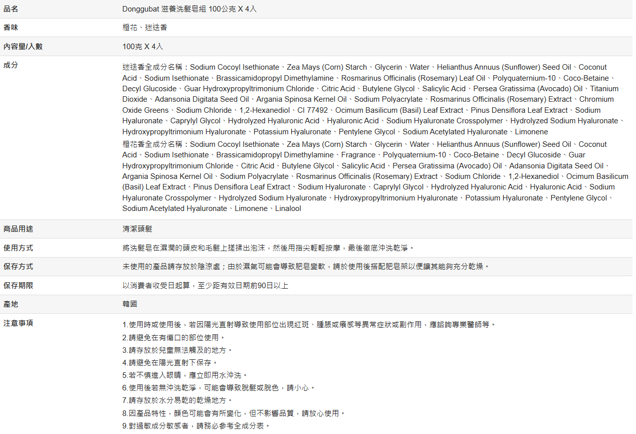 【好市多代購】Donggubat 滋養洗髮皂組 100公克 X 4入