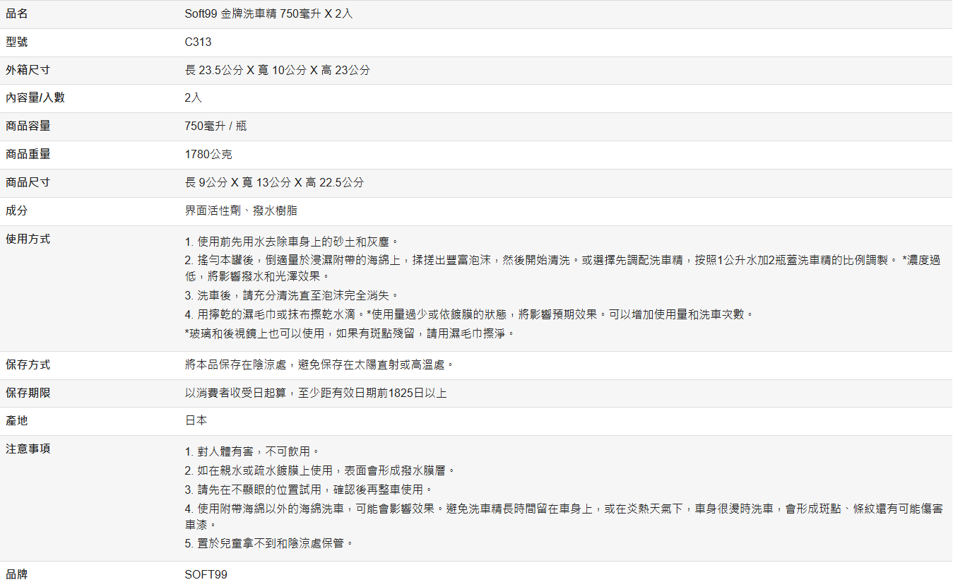 【好市多代購】Soft99 金牌洗車精 750毫升 X 2入