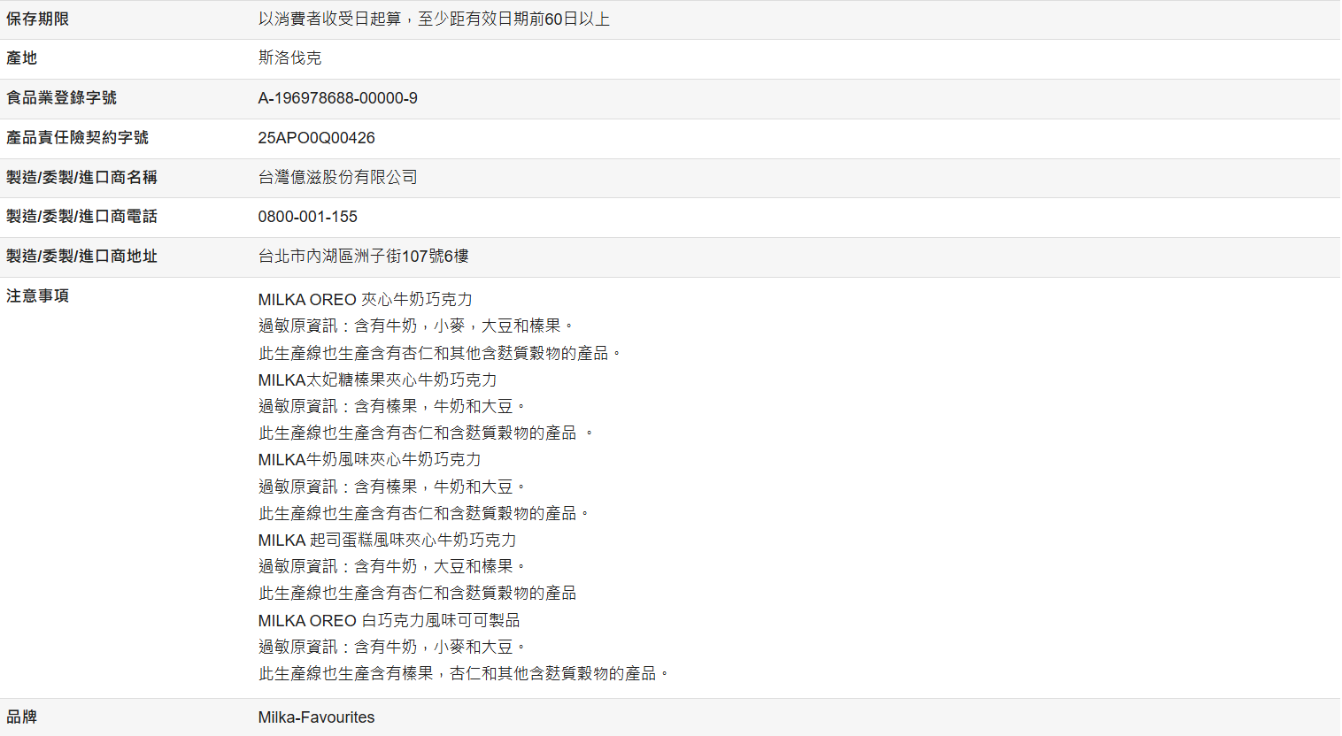 • TOBLERONE/ COTE D'OR/OREO/ MILKA/ DAIM