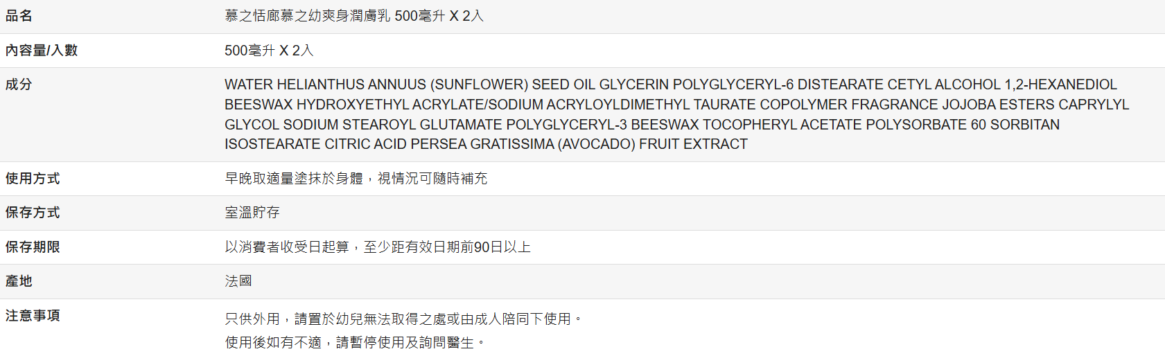 【好市多代購】慕之恬廊慕之幼爽身潤膚乳 500毫升 X 2入