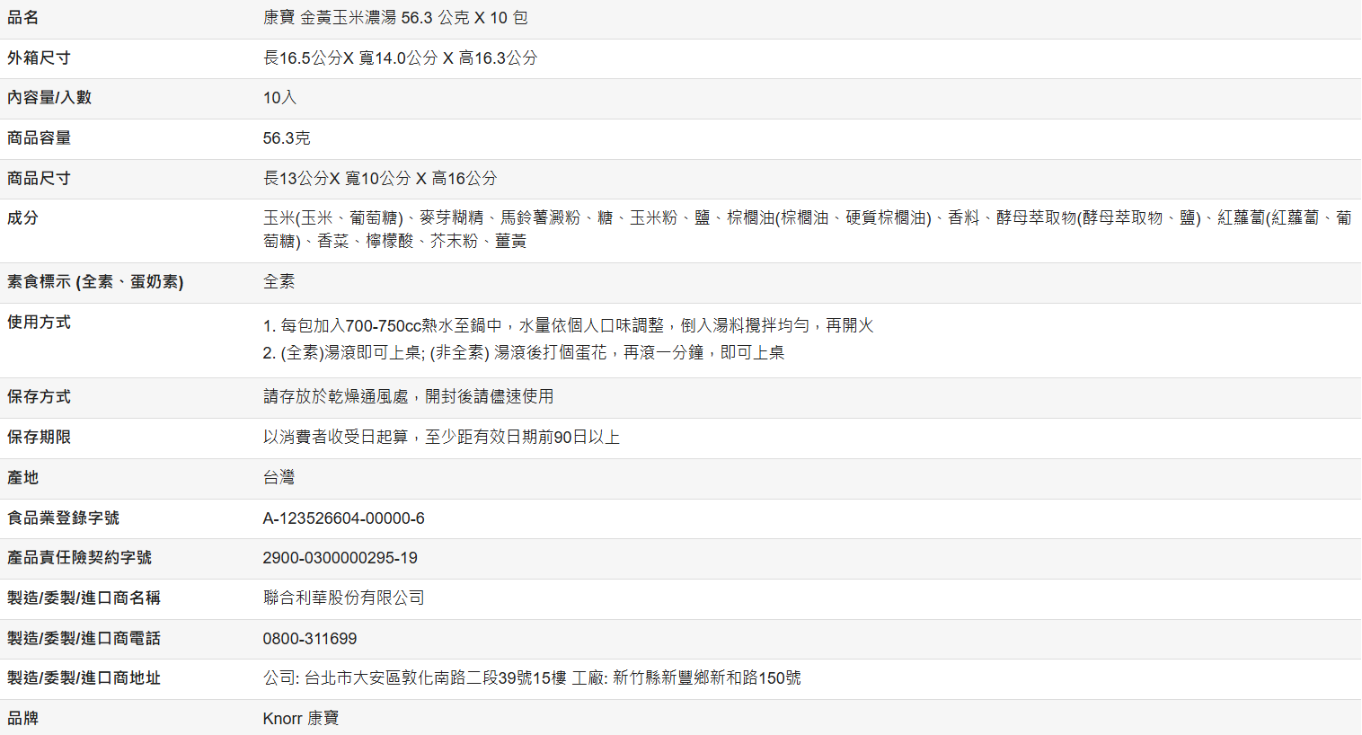 【好市多代購】康寶 金黃玉米濃湯 56.3公克 X 10包