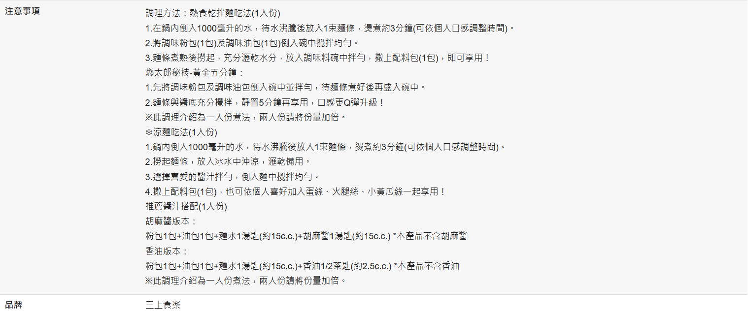 • 食用方式多變,可將燙好的麵瀝乾後加入調味醬包做成日式炒麵