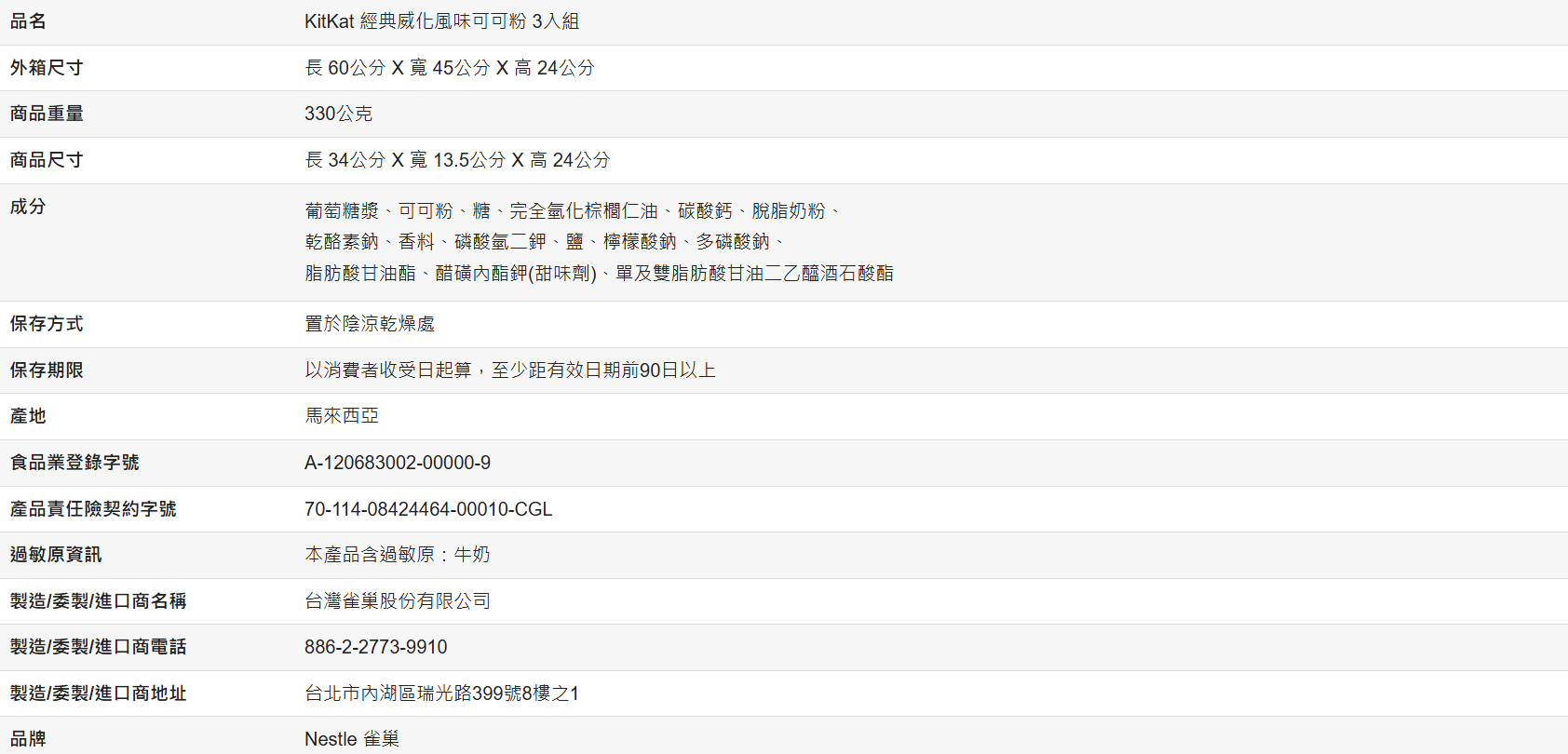 【好市多代購】KitKat 經典威化風味可可粉 3入組