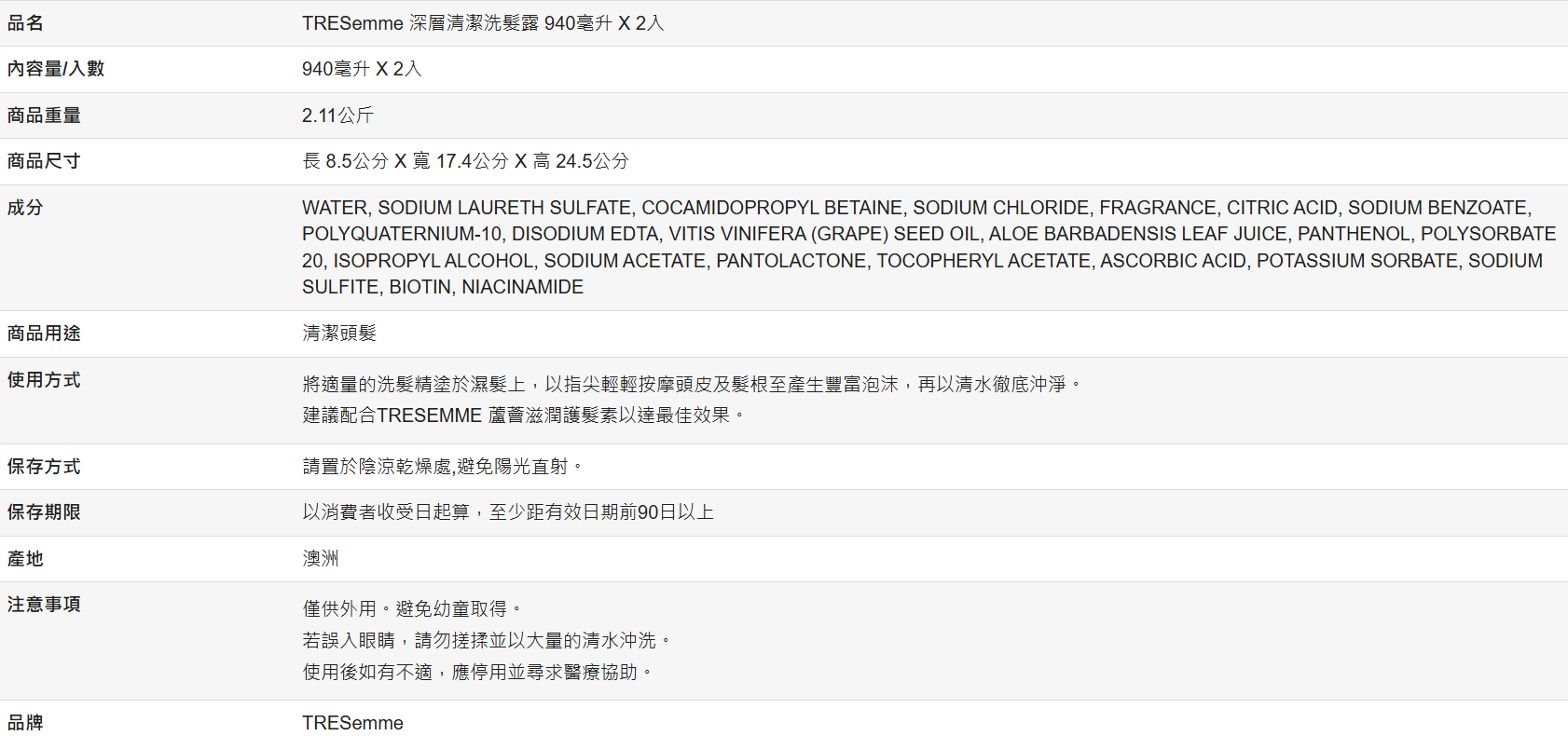 • 澳洲原裝進口,洗淨多餘油脂,同時保濕修護秀髮